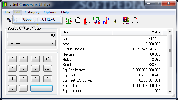 What's more, in case you have an essential project to do, you have the option to measure the energy (e.g. calories, ergs, joules, horsepower, kilowatt), as well as the pressure (atmospheres, bars, centimeters mercury, millibars, pascals). Last but not least, you can copy a selected value to the clipboard and use it in your documents with ease, set the window to stay on top of other programs, and display a particular decimal number.