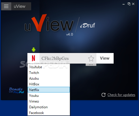 uView allows you to stream videos from websites such as YouTube, Vimeo, Twitch, Azubu, HitBox, Netflix, Youku, Dailymotion or Facebook. You simply need to select the desired domain, then copy the video URL to clipboard. The program can instantly import it and prompt the media player. After closing the video, the program remembers the most recently streamed item.