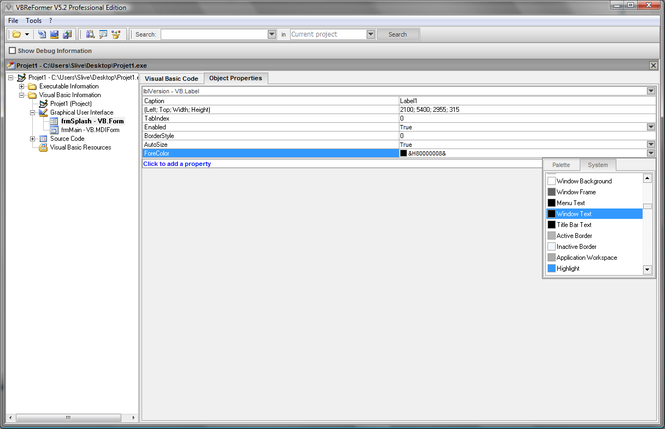 VBReFormer succeed where others resources editors fails: editing the static design properties of Visual Basic 6 applications easily and without limitation of size, working directly on your binary (very useful for translating your application into another language for example).