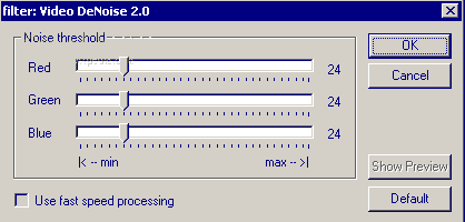 The level cut of noise can be regulated for any of color components. The filter is optimized for processors with support MMX-technology.