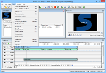 Video Edit Magic is a tool you can use to capture and edit video files. Besides video editing, you can capture footage from a USB or DV camera or view the interactive tutorial and user guide.