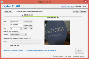 To sum it up, Video To Gif is a lightweight, but practical application which is sure to grab the exact portion of a specific video, and convert it to GIF. Sure enough, quality mostly depends on the input video, but you do get a certain degree of control over framerate, and output size specifications.