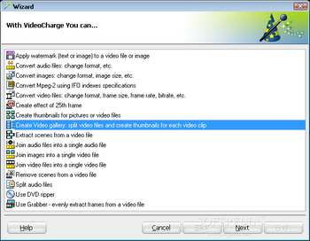Videocharge Full allows to delete and extract the necessary scenes from a film, join a few films into a single one; possibility to create thumbnails for every produced film (out of the first or specified frame) makes it indispensable for creation of web galleries.System requirements64 MB RAM (128 MB recommended)