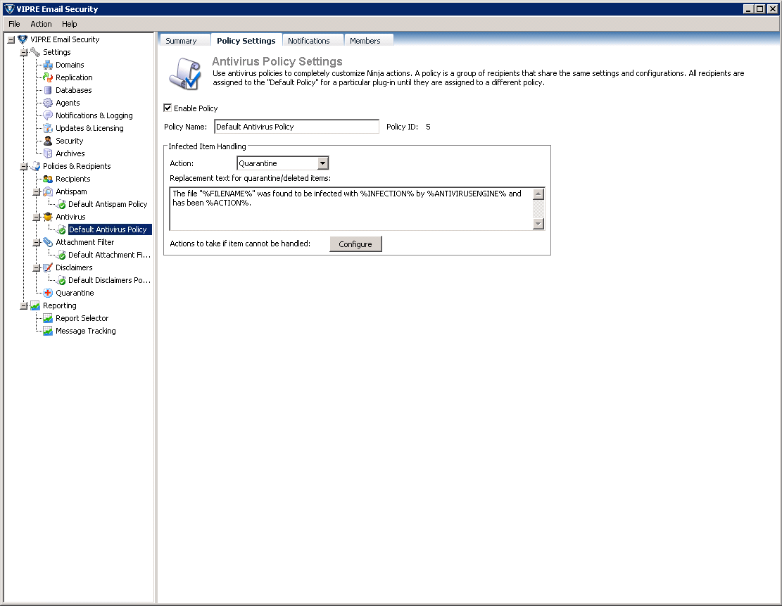 Considering that managing Microsoft Exchange usually involves important cost factors, it does not come as a surprise that you would do all possible to keep the network safe and secure. VIPRE Email Security for Exchange is a policy-based messaging security application that enables System Administrators to enforce various security measures and hence, protect the network from viruses, phishing and spam.