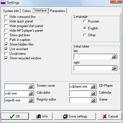 It has two fixed windows like a well-known file managers for DOS, but every window can have folder-tree like a Explorer. It windows can explore real and virtual folders (as My Computer, Printers, Control Panel etc.).