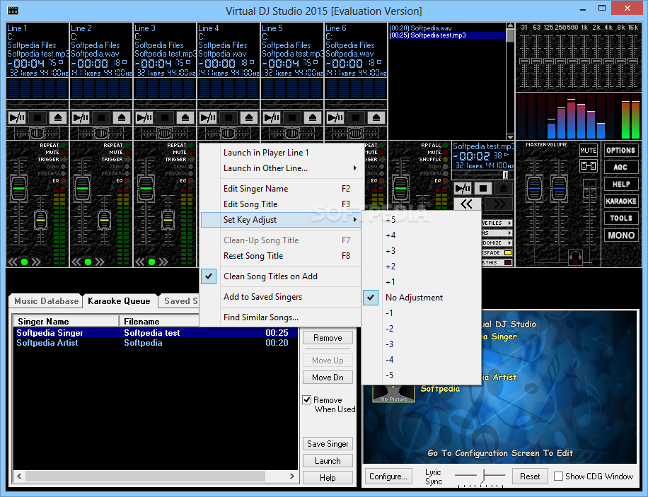 Even though VDJ looks different from other Karaoke programs, it still contains a Singer's List feature. When enabled, you can queue up any number of songs, along with the name of the person who wishes to sing it. From there, you can drag a song into a line in VDJ, or simply double-click to launch the file in the first line. VDJ will also display a list of singers/songs in the CDG window when no karaoke file is being played (for example, if your CDG window is connected to a second monitor, television, or multiple TVs, your patrons will know who's up next, and when their song will be up)