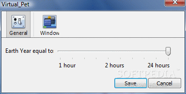 By accessing the program’s Preferences area, you can adjust the length of an Earth Year for the pet. Thus, one year can pass in an hour or in 24 hours.