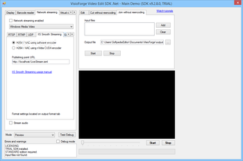 VisioForge Video Edit SDK .Net also offers support for virtual camera streaming, using the proper hardware and you may also save the output video to a Decklink card. The program supports video conversion and allows you test or debug the result.System requirementsVisual Studio
