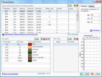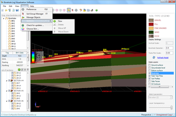 VisLog is an application that allows you to enter borehole information including but not limited to their depth, coordinates, ground water level, etc. It has a three dimensional interactive view of the underground subject project.