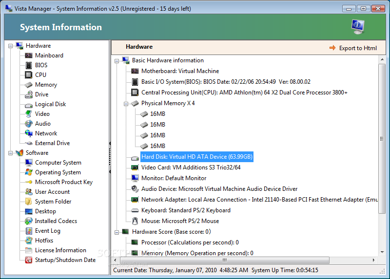 Get detailed system and all hardware information on your system; show all detailed information of running processes and threads on your machine; Vista Manager offers 1-clicking cleans your system automatically.