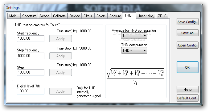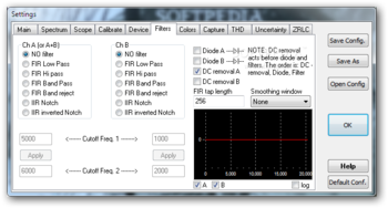 The main window of the utility is very simple and enables you to adjust all the settings from the right panel. You can also enable the Cepstrum feature, meaning that the scope window will display the ‘cepstrum’ of the signal and not the signal itself.