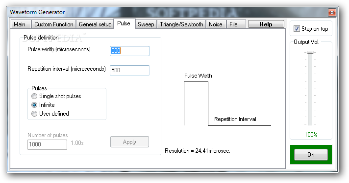 Still, using this application you have the possibility to apply a sinusoidal signal of 15-20 Khz and view a perfect waveform with all the points of the original signal.