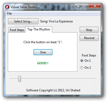 Are you a Salsa dancer? Do you have difficulty following the rhythm/timing in certain songs? Visual Salsa Studio is designed to help you improve your dance skills by mastering the salsa beat. Practice at your leisure, any time you want, and get an instant feedback on your progress.