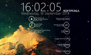 vNext provides Rainmeter users with an easy to install skin that enables them to access information at a glance concerning CPU and RAM usage, the free disk space, the computer up time, Recycle Bin usage and more.