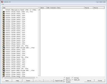 On the right side of the screen you can view various information, including the pack identifier, pack stuffing length, video stream start code, PES HeaderData length, MPEG frame and frame content details (e.g. padding stream start code, length and frame).