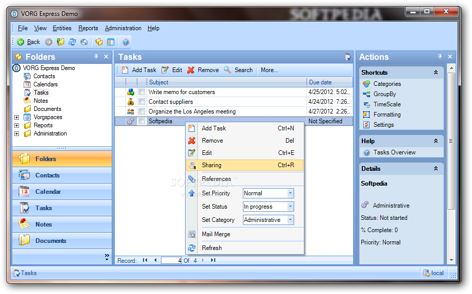 VORG Express is the personal information manager designed for individual users that provides an integrated solution for organizing any type of informations, task, etc.