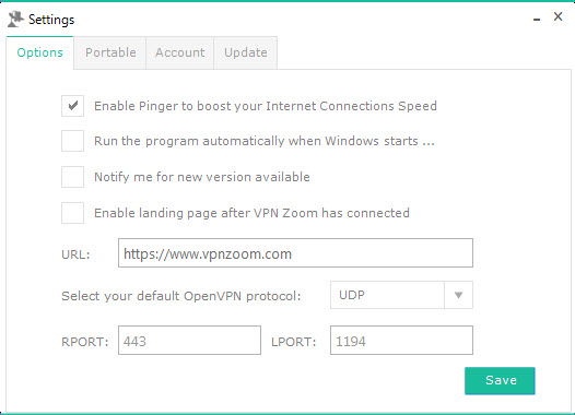 The VPN Zoom portable VPN client allows you to load our custom connection manager on a USB drive and take it with you. Weve secured the application in the event that you lose your USB drive. A password must be entered to launch the application. The default password is "vpnzoom" and should be changed from the application settings to increase security once installed. Requires: Microsoft .NET Framework 4.0 or higher.