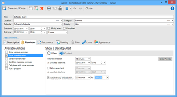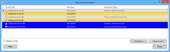 View customizable popup reminders and send reminders via email, SMS, or text-to-speech to yourself or others.