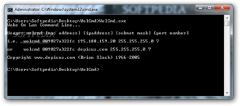 In order to use it, you have to enter the following command: wolcmd [mac address] [ip address] [subnet mask] [port number]. It runs in the command prompt, thus it wont pose any problem to those who are familiar with the console.