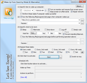 * Can run a file or open a web page at a predetermined time after a wake-up event, during normal operation, or before performing power operation.
