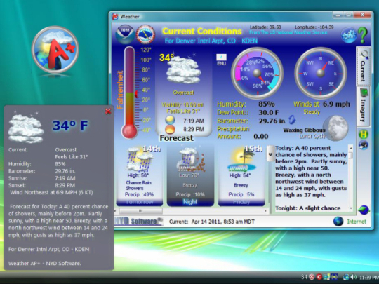 Weather AP+ is a free software by NYD Software and works on Windows 10, Windows 8.1, Windows 8, Windows 7, Windows XP, Windows 2000, Windows 2003, Windows 2008, Windows 98, Windows ME, Windows NT, Windows Vista, Windows 2012.