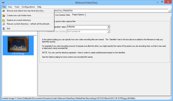 The Media File Viewer tab enables users to browse pictures and movies taken with the application as well as attach notes to them, while the Project Options tab can be accessed in order to configure identifiers which are to be used when naming new files.
