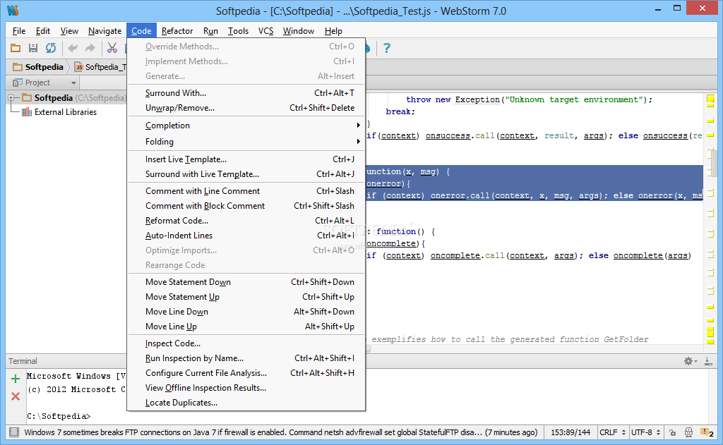 Refactoring capabilities provided for JavaScript allow you to easily modify the code structure as well as undo the modifications.