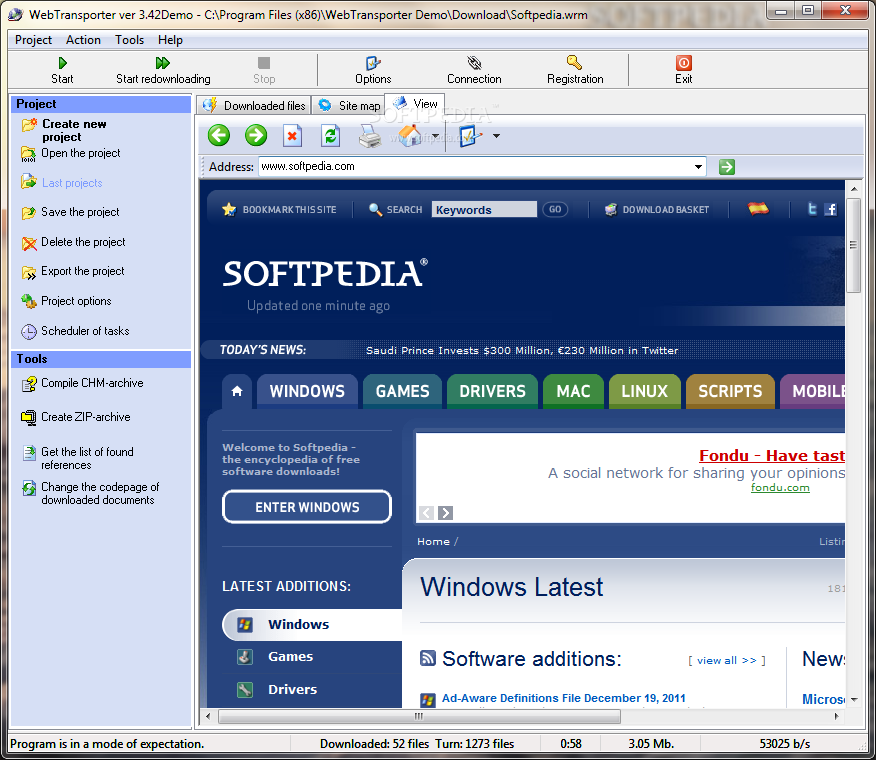 You can download WebTransporter which is 2.07 MB in size and belongs to the software category Offline Browsers. WebTransporter was released on 2005-05-31 and last updated on our database on 2017-02-15 and is currently at version 3.42.