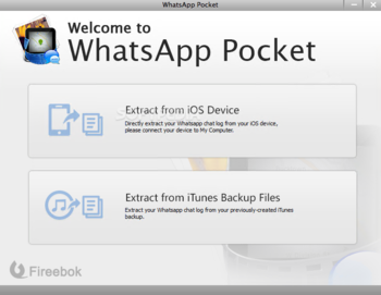 WhatsApp Pocket is a demo software by Fireebok and works on Windows 10, Windows 8.1, Windows 8, Windows 7, Windows XP, Windows 2000, Windows 2003, Windows 2008, Windows Vista, Windows 2012.