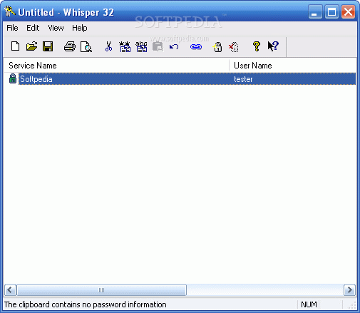 Additionally, you can password-protect your current project, save it as a Whisper32 file or export it to CSV, add or edit an entry, as well as copy the user name and password to clipboard.