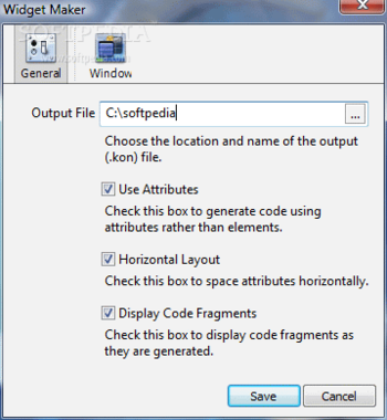 So, you can get started by defining the widget when it comes to the version, minimum version, whether the XML should be strictly checked or not, debug mode, tracking attribute (opacity or rectangle) and required platform (Windows, Macintosh, or both). Plus, you can allow custom object attributes and arbitrary XML, as well as set the window position to be retained.