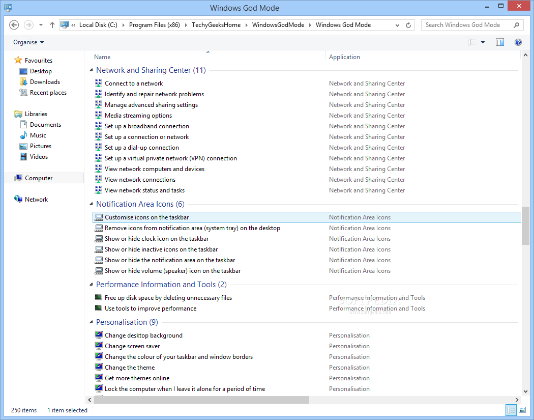 Windows God Mode is a free software by Techy Geeks Home and works on Windows 10, Windows 8.1, Windows 8, Windows 7, Windows 2008, Windows Vista, Windows 2012.