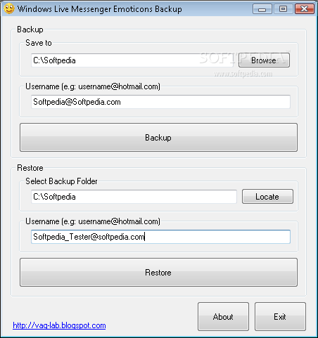 In order for Windows Live Messenger Emoticons Backup to work properly, you need to deploy Microsoft’s messenger application first. The program actually backs up the specified user’s account stored on the computer. This is very helpful when reinstalling your operating system, as you can rapidly restore the contents to the newly installed Live Messenger.