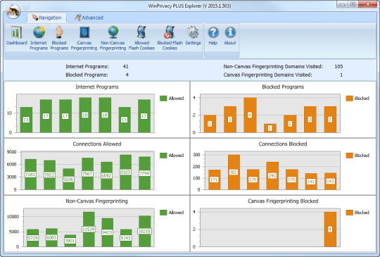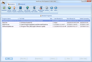 WinPrivacy rips open the veil of secrecy programs have been hiding behind by telling you every single program on your computer using the internet, where its going and how much data it is transmitting and receiving in a simple to use program. On top of that, WinPrivacy allows you to block any program you want from using the Internet with as little as two clicks. In addition, you can even direct WinPrivacy to block any new program from using the Internet without your express approval. Thats right! Finally, you are in charge of your Internet. Why is blocking any new program from using the Internet important feature? Because most malware starts as a seed program that once installed, reaches out to the Internet to download a payload that explodes into the full infection. If the seed program is blocked from using the Internet, then you dont get infected. Instead, you can simply open the Blocked Programs page and instruct WinPrivacy to delete the unknown program. That easy! In addition, WinPrivacy gives you the ability to stop Canvas Fingerprinting and automatically remove Flash Cookies simply by activating those features on the settings tab.
