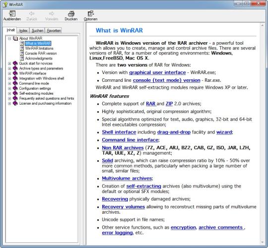 WinRAR is a 32-bit / 64-bit Windows version of RAR Archiver, the powerful archiver and archive manager. WinRARs main features are very strong general and multimedia compression, solid compression, archive protection from damage, processing of ZIP and other non-RAR archives, scanning archives for viruses, programmable self-extracting archives(SFX), authenticity verification, NTFS and Unicode support, strong AES encryption, support of multivolume archives, command line and graphical interface, drag-and-drop facility, wizard interface, theme support, folder tree panel, multithread support and Windows x64 shell integration. WinRAR provides complete support for RAR and ZIP archives and is able to unpack and convert CAB, ARJ, LZH, TAR, GZ, ACE, UUE, BZ2, JAR, ISO, Z, 7-Zip archives. WinRAR is available in over 40 languages.