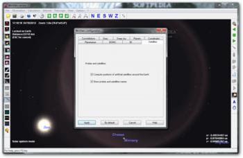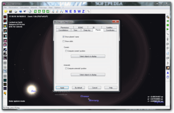 updated comets and asteroids' elements, querying of DSS (Digitized Sky Survey) servers to obtain a photograph of that portion of the sky being displayed by the program, a notice of the visibility of artificial satellites