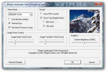 Winter Landscapes Free Screensaver is a free software by Mega-Screens.com and works on Windows 10, Windows 8.1, Windows 8, Windows 7, Windows 2012.