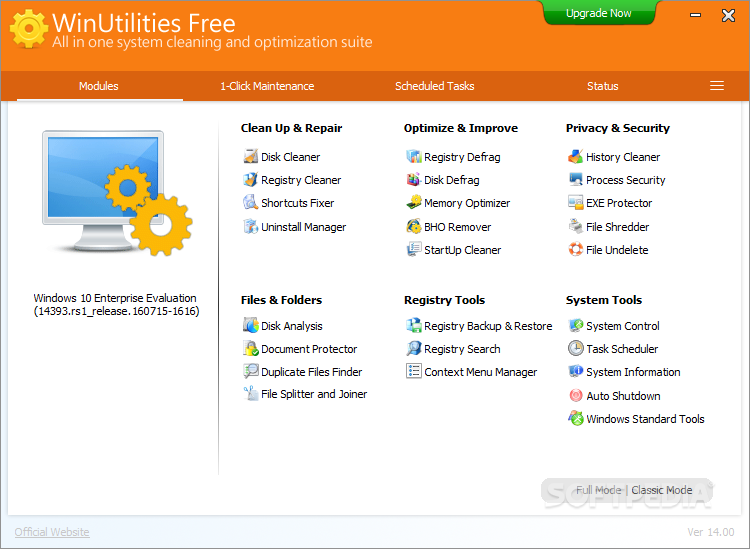 You can download WinUtilities Free Edition which is 6.62 MB in size and belongs to the software category System Tweak. WinUtilities Free Edition was released on 2017-03-04 and last updated on our database on 2017-04-23 and is currently at version 14.51.