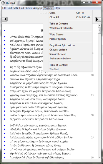In its current release WordHoard contains the entire canon of Early Greek epic in the original and in translation, as well as all of Chaucer, Shakespeare, and Spenser. The section on Provenance, Copyrights, and Licenses provides detailed information about the texts.