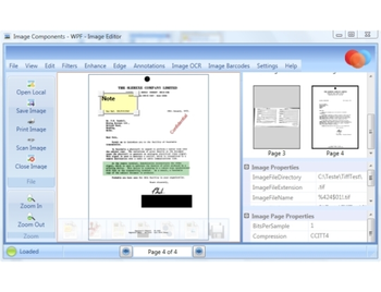Image Components for WPF, is a comprehensive Windows Presentation Foundation Imaging SDK. It allows users to read and edit the most common image file types, and convert between them. It also allows image annotation, image capture by twain devices, OCR content by zone, selection or full page, read the most commun barcode types, image pages thumbnail display... This SDK is designed to help developers of Rich Desktop Applications, implement Imaging applications quickly and with low costs. Easily add document and image viewing and editing to your desktop applications with the controls included in the Image Components WPF package.