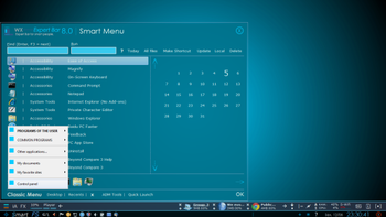 The utility is fairly simple to understand and work with. Upon installation, restart your machine or log off and back in again, and you will notice your taskbar has been replaced with a visually-appealing interface, that features a Menu component, allowing you to access Programs of the User, Common Programs, Other Applications, as well as My Documents or My Favorite Sites, from the corresponding sub-menus and more.