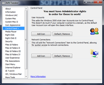 XdN Tweaker is a free software by Nicholas Caito and works on Windows 10, Windows 8.1, Windows 8, Windows 7, Windows XP, Windows 2000, Windows 2003, Windows 2008, Windows Vista, Windows 2012.