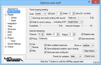 Open files/folders from Windows Explorer, drag'n'drop files/folders/shortcuts/URLs, monitor the clipboard for playable URLs, drag'n'drop tracks from XMPlay into other programs, icon customization