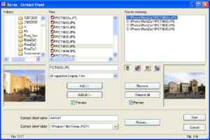 Xorax Contact Sheet is a simple tool that generates a contact sheet (index files) from selected photos. The color scheme, page size and thumbnail dimensions can be specified. Each thumbnail can be rotated, if need it.