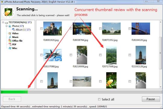 Easy to Use: xPhoto walks you through a step by step wizard, you dont need any special IT technology to complete the whole recovery process. Flexible: xPhoto provides 2 recovery modes. You can choose the mode which best fits your data loss problems. Safe: xPhoto is a read-only utility, it doesnt write any data into the media you tried to recover data from. xPhoto will prevent you from saving the recovered data into the disk you scanned. Fast: xPhoto features some cutting edge technologies to overcome the disk I/O bottleneck. Those cutting edge technologies speed up the recovery several times. We have once compared xReovery with another famous data recovery softare. For a 7.5 GB disk, xPhoto takes only 3.5 minutes to complete the scan process, while the compared one takes almost 6 minutes. User-friendly: most data recovery software provides data preview functions, however, those features wont be available until the whole scan process is finished. That means, if you have a several hundred gigabyte disk to recover data from, you have to wait several hours to see the result. xPhoto invents an amazing technology overcome it , every time the scan process finds a file, you can immediately view the file concurrently with the scan process. This feature makes sense if the files you wanted are in the very beginning of a big disk. If you data is in the begging part of a disk, you dont need to wait the whole process to complete, you just need to click the pause button and then save the data you want. This feature saves you a lot of time, and makes the recovery not boring any more. Amazing built-in photo viewer: xPhoto has an excellent built-in photo viewer. Unlike the photo viewer of other data recovery software, xPhoto built-in photo viewer window can be resized. This feature is very useful when you view a big photo, you dont need to use the scroll bar to view the photo as you do with the fixed size viewer of other recovery utilities. Besides that, xPhoto built-in photo viewer is much more convenient than others. With others, you have to close the viewer then click the next one, this is a big problem if you want to view hundreds of photo. xPhotos built-in photo viewer has 2 buttons(previous and next), you dont need to repeat the close-open action, you just need to click previous or next button.