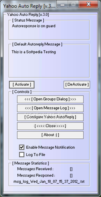 Yahoo Auto Reply is an application addressed to all Yahoo Messenger users, offering them simple utilities to auto-respond to any received message.