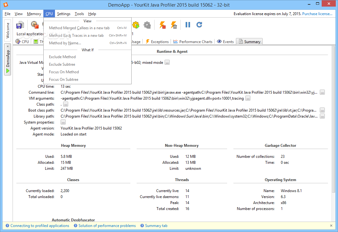 YourKit Profiler is a demo software by YourKit, LLC and works on Windows 10, Windows 8.1, Windows 8, Windows 7, Windows XP, Windows 2000, Windows 2003, Windows 2008, Windows Vista, Windows 2012.