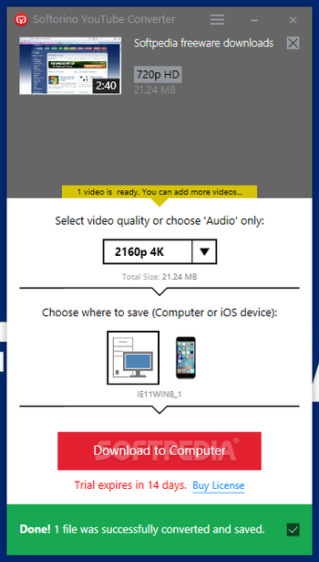 Softorino YouTube Converter is an application designed for users who enjoy watching videos on YouTube without being disturbed by annoying ads and even when they do not have an Internet connection on their computer or phone.