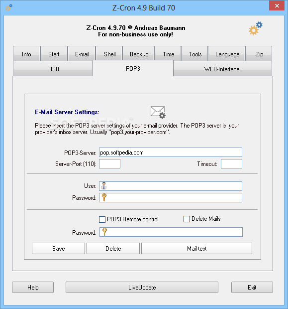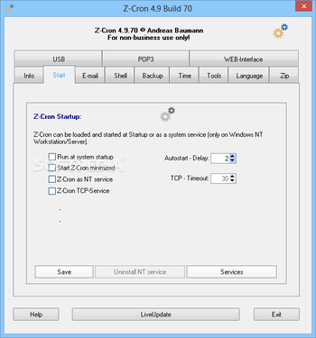Z-Cron is a demo software by Andreas Baumann and works on Windows 10, Windows 8.1, Windows 8, Windows 7, Windows XP, Windows 2000, Windows 2003, Windows 2008, Windows Vista, Windows 2012.