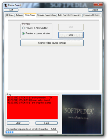 In this software 4 types of alerts are embedded which we mention them in the following order: 1. Video recording: This program can record video after motion occurrence or specified time 2. Image capturing: This program can capture images after motion occurrence at specified time intervals. 3. Dialing: This program has the ability of dialing and you can give a list of phone numbers to the software , and the program after detecting any motion, will dial the phone numbers, and can playback a WAV file or text after Communication .But this feature depends on the modem of device. 4. Playing audio file: By using this feature, you can route an audio file with WAV format to the software , and the software once detect any motion will attempt to play the file. The file could be a message or alarm. 5. Running a program: By using this feature, you can route An executable file to the software, and the software once detect any motion will attempt to run the program. 6. Hiding the software: By using this feature, once detect any motion, you can turn off monitor or hide the software till the user does not recognize the program activation. - Other features :You can see the received images from the video source remotely, by using client software and web based monitoring.Another feature of this software is that your commands can be sent via a phone to the software to do them.You can also rotate the camera as local and remote by using a device. You can download the trial version from download menu and test it to ensure proper functioning of the software on your operating system.For example Tele Remote Connection and Make a call do not work properly in windows 7 Disclaimer: Rotator device is not providing when you purchase the software.